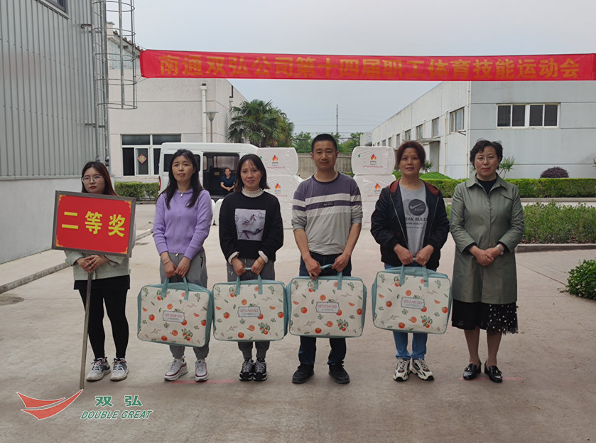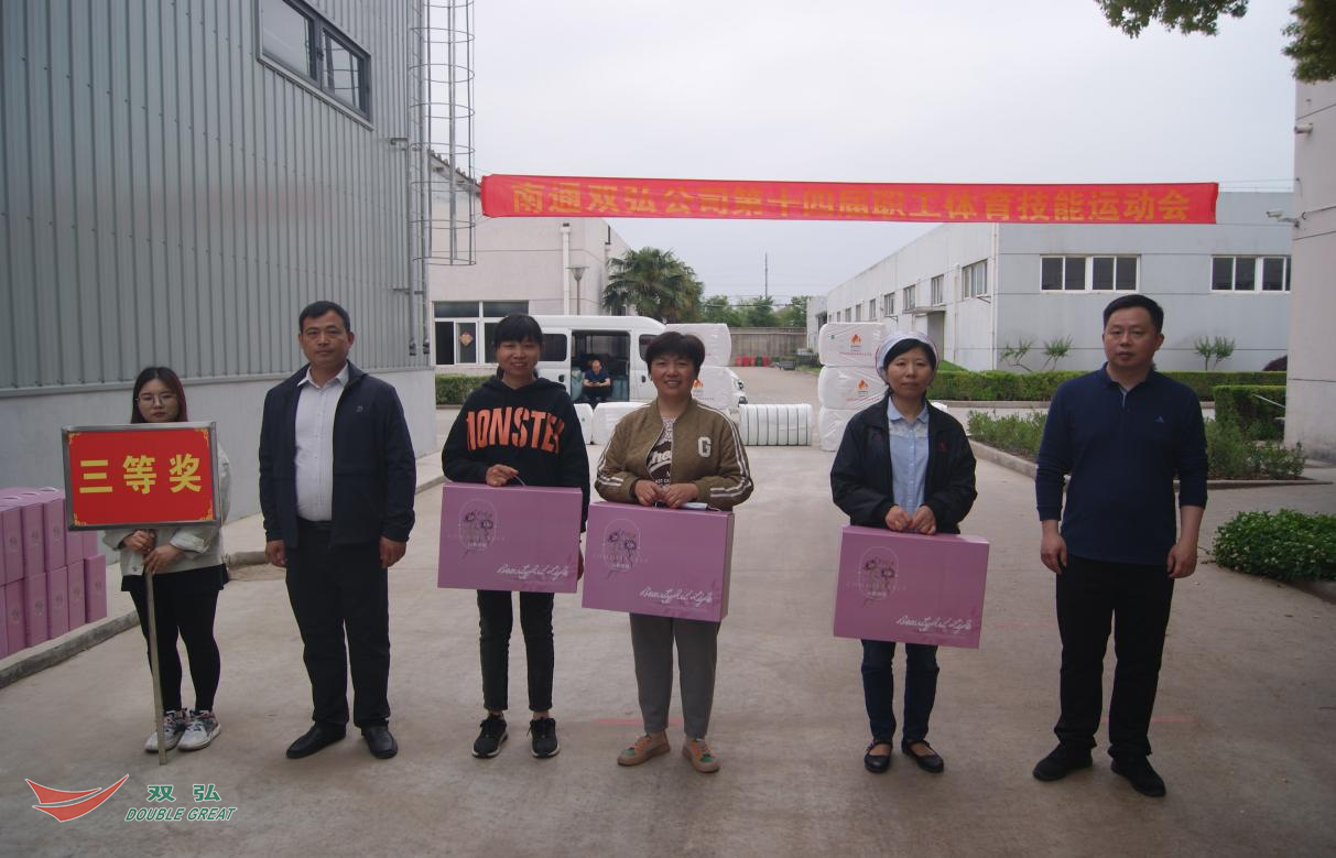 Afin d'enrichir la vie spirituelle et culturelle des employés, de promouvoir l'esprit du travail acharné, du progrès, de la santé et de l'harmonie, d'améliorer la cohésion et la force centripète de la majorité des employés et de promouvoir le développement de haute qualité de l'entreprise, Le 6 mai, Nantong Double Great Textile Co., Ltd. a tenu les 14e Jeux de compétences sportives des employés. Zhang Guangyun, vice-président à temps plein de la Fédération des syndicats de la ville de Qutang, et Yang Yang, président de Double Great Company, ont participé à l'événement. Plus de 160 employés de première ligne de divers ateliers de l'entreprise ont participé aux compétitions de divers événements.