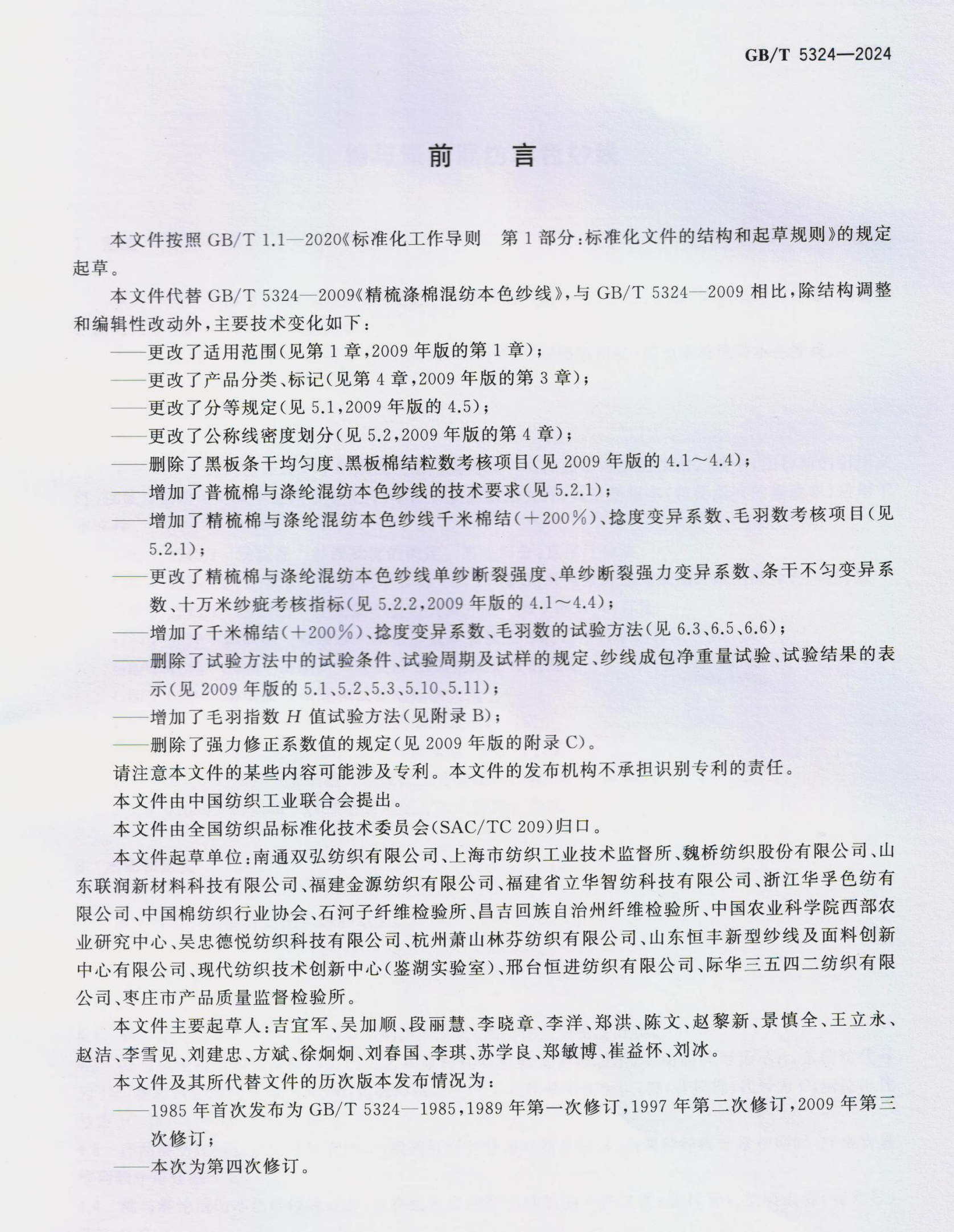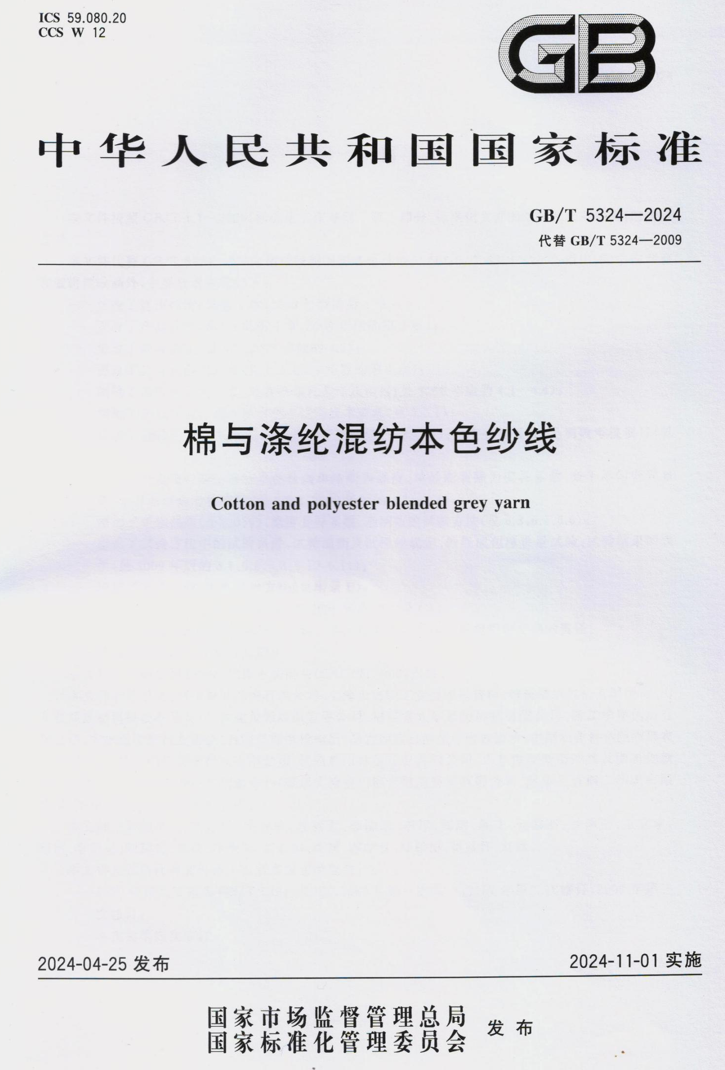 Le National Standard GB / T 5324-2024 "Yarn naturel mélangé en coton et en polyester" repêché par Double grande entreprise sera officiellement mis en œuvre le 1er novembre 2024.
