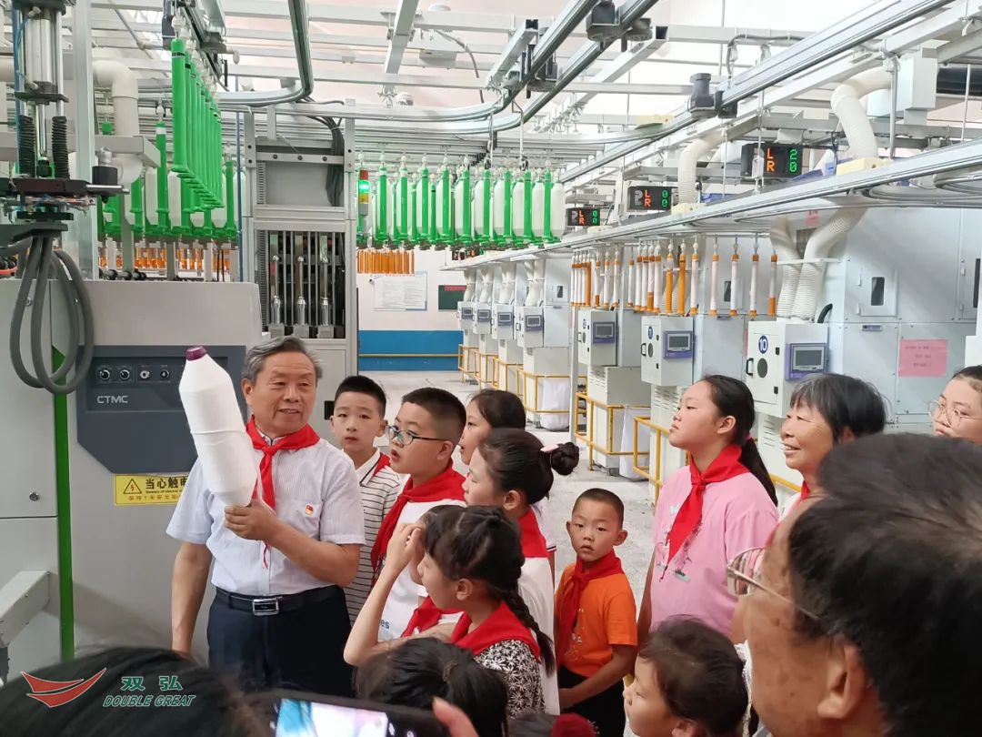 Au cours de l'événement, les étudiants ont visité l'ensemble du processus de production de la société de nettoyage, de cardage, de filature et d'enroulement de l'entreprise avec grand intérêt. Yang Guangze, un homme bon chinois, un modèle moral de la province du Jiangsu, et le directeur général de Nantong Double Great Textile Co., Ltd., ont combiné l'histoire du développement de 47 ans de l'entreprise, a raconté l'histoire de sa lutte en cours de route et a donné aux étudiants une "leçon" de vie vivante et inoubliable. Yang Guangze a cité les trois phrases d'or du secrétaire général Xi Jinping: "N'oubliez pas la souffrance et la gloire d'hier, soyez digne de la mission et de la responsabilité d'aujourd'hui, et respectez le grand rêve de demain" et les a présentés à de jeunes amis. L'activité "s'il vous plaît rassurez que la fête rendra le pays solide" a atteint un point culminant au milieu des cris de jeunes amis.