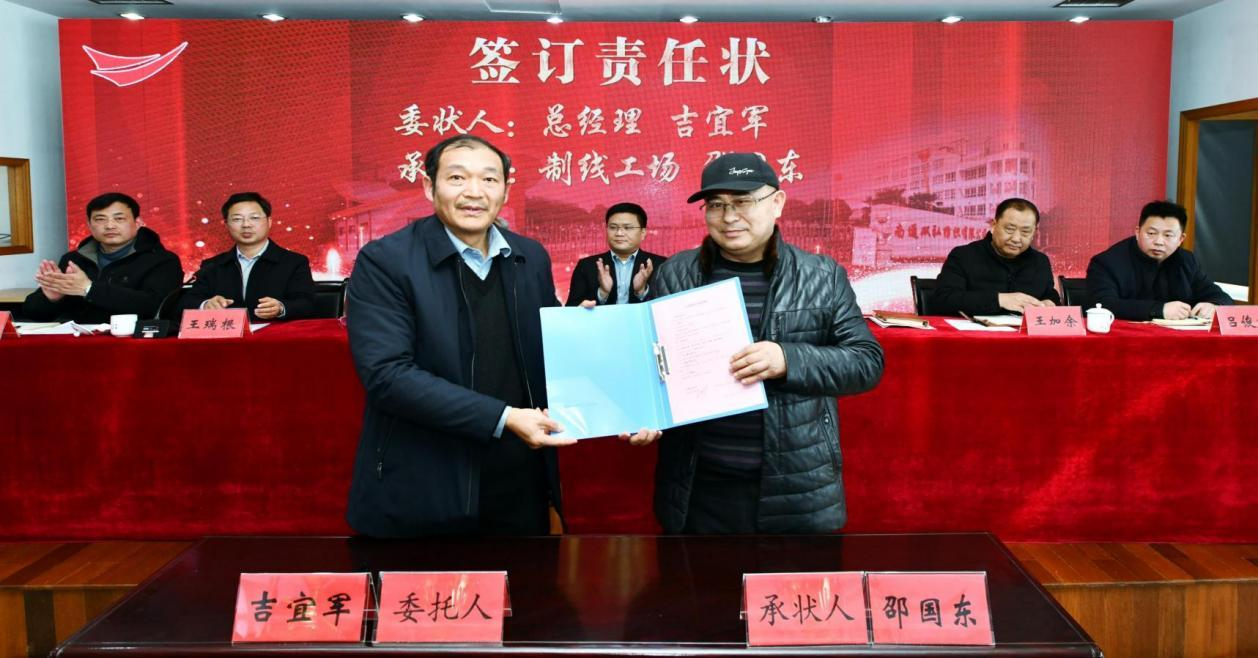Avec un objectif et un seul esprit, nous nous efforçons de mettre en œuvre des stratégies de réforme. Nous soulignons le leadership politique et construisons une équipe d'employés. Nous soulignons le sujet de la responsabilité et stimulons la vitalité. Nous soulignons une usine avec plusieurs systèmes et encourageons les fusions et acquisitions. Nous soulignons l'efficacité du travail, la gestion centralisée par l'entreprise et la responsabilité hiérarchique des départements. L'unité est la force et la lutte crée l'avenir. Le camarade Ji Yijun espère que toutes les doubles gens formidables seront confiants, plein d'espoir, pionniers, G et entreprenants avec l'esprit d'un serpent qui peut parcourir des milliers de kilomètres, prendre l'initiative en difficultés, grimper sur les obstacles dans l'adversité et travailler dur ensemble pour construire un double de longue date et créer un meilleur avenir. Le chef du département marketing a signé une lettre de responsabilité de la cible marketing avec le président Yang Yang, et le chef de l'atelier de production et l'équipe de maintenance électrique de l'équipement ont signé la lettre de responsabilité de l'objectif de l'atelier et la lettre de responsabilité du travail électrique de l'équipement avec le directeur général Ji Yiju, N respectivement.