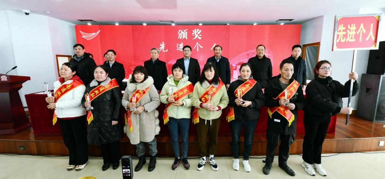 Le camarade Wang Ruigen, secrétaire adjoint du comité du parti de l'entreprise, a lu la décision de mention élogieuse et a félicité et attribué 4 groupes avancés, 4 stars du marketing, 54 individus avancés, 136 projets innovants et 9 réalisations QC.