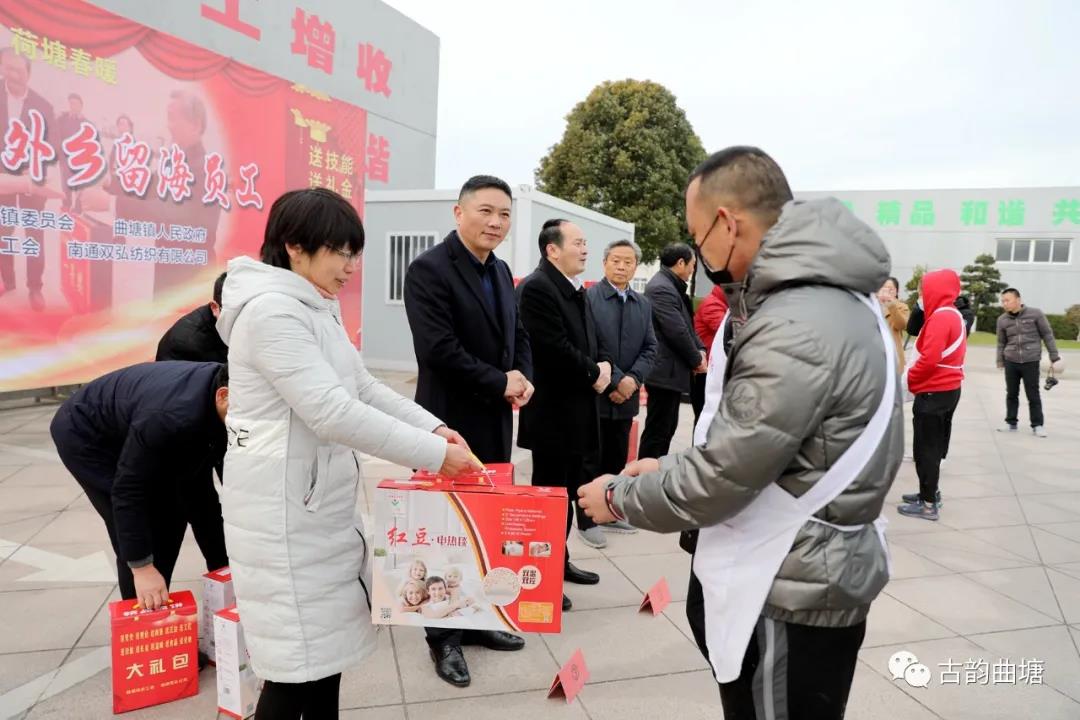 Le festival du printemps se rapproche de plus en plus, et l'atmosphère festive devient de plus en plus forte. Pour laisser les employés qui sont restés à Nantong ont une nouvelle année chaleureuse et réconfortante avec la saveur de la fête, la saveur de la nouvelle année, la saveur de la bénédiction et la saveur de l'arrière-goût. Le 8 février, le "QushiI reste pour vous, l'étang Lotus est chaleureux au printemps" - "dix cadeaux" salutations de printemps pour les employés étrangers qui sont allés à Nantong ont eu lieu à Double Great Company, organisé par le comité du parti et le gouvernement de la ville de Qutang, et entrepris par la Fédération des syndicats commerciaux de la ville de Qutang et de la double compagnie. Ji Zurong, secrétaire du comité du parti de la ville de Qutang, Ding Xiaojun, secrétaire adjoint du comité du parti, Zhang Guangyun, vice-président du Bureau de développement économique, Yang Guangze, directeur général de Nantong Double Great Company, et Ji Yijun, président, a attiré l'événement. L'événement a également participé à tous les cadres supérieurs de Nantong Double Great Company et 28 "nouveaux employés doubles" qui sont restés à Nantong pour la nouvelle année.